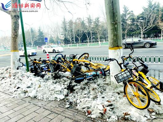 本报讯(潍报全媒体记者 张静)1月4日,市民张先生反映,高新区胜利东街与金马路交叉口西侧150米处路南的人行道上有一个雪堆,有人将大量共享单车杂乱地堆放到了雪堆上,不仅影响市容,而且存在安全隐患,盼相关部门处理。 下午1时许,记者来到现场看到,行道树之间的空地上有一大堆雪。约二十辆共享单车被人扔在了雪堆上(上图),其中既有蓝白色的哈罗单车,也有黄色的美团单车,一辆压着一辆,连同下面的雪堆,形成了一座高约一米的“小山”。 当天下午,记者将此事反映给了高新区综合行政执法局。工作人员详细记录后表示,会尽快通知相关人员落实此事。