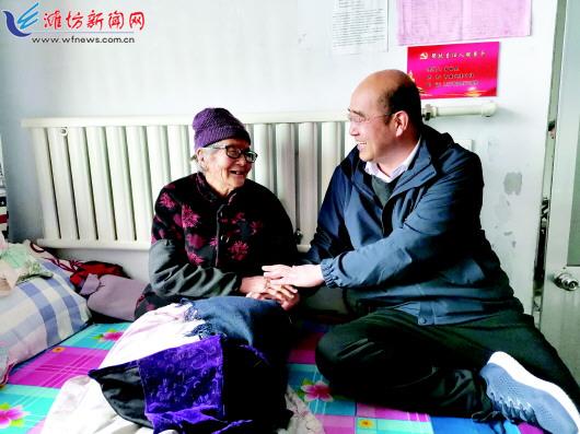 | 牛伟国(右)看望脱贫户高玉莲。 图片由受访者提供 |