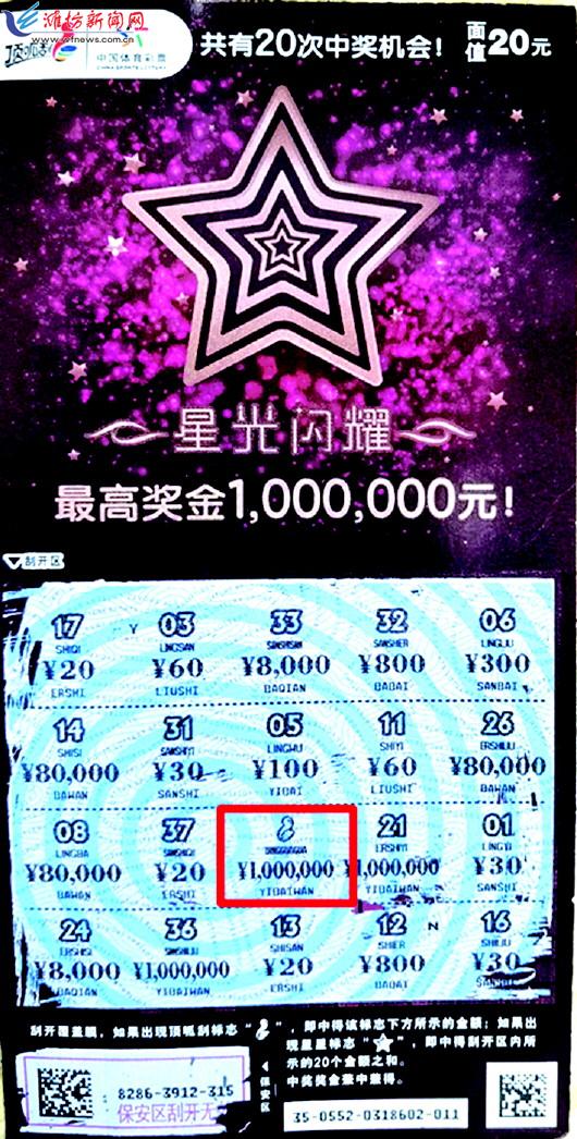 2021年2月20日,辛丑牛年正月初九,体育彩票开市第二天,青岛彩市即爆出大奖喜讯,西海岸新区一位幸运购彩者喜中顶呱刮“星光闪耀”头奖100万元!开启辛丑牛年青岛大奖序章。 2月20日下午,中奖人张大哥(化姓)就赶到体彩中心火速兑奖。据张大哥介绍他老家在东北,最近几年都在青岛打工。 “往年过年都会回老家,今年因为家乡有疫情,响应公司号召,就地过年,就留在青岛了。”张大哥说,因为假期比较长,自己在这边也没有什么亲戚,假期里和工友一起把没去过的景点都玩了个遍。 张大哥平时也比较喜欢玩体彩顶呱刮,一有时间就会去刮几张过过瘾。“年后张大哥还是第一次来,当时店里人不太多,和大哥聊了会儿天,他说这大过年的也没捞着和家人团聚,感觉怪孤单的,犒劳下自己,来一包顶呱刮,痛快玩一次。”销售员小隋说他向张大哥推荐了几款顶呱刮彩票,最后张大哥自己选了一包20元面值的“星光闪耀”。 “大哥自己趴在桌子上刮,突然他一拍大腿大喊一声‘哎呀!中啦!’。我赶紧跑过去看到在那张彩票第三行中间刮出一个顶呱刮标志,下面奖金显示¥1000000!”确认中奖后,小隋赶紧陪张大哥一起到体彩中心领奖。 领取奖金后,张大哥说,自己已经辞职了,准备带着奖金回老家,初步打算买几头牛养养,以后也不出来打工了,在家乡发展,离着亲人都近点,感觉更踏实。 (庞彤彤)
