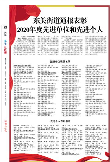 东关街道通报表彰2020年度先进单位和先进个人