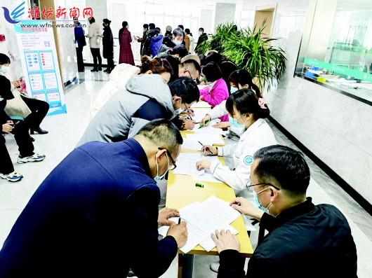 | 市民在寒亭区丰华医院登记接种信息。 |