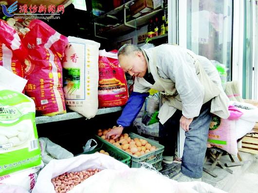 | 早春园市场商贩张先生在整理鸡蛋。 |