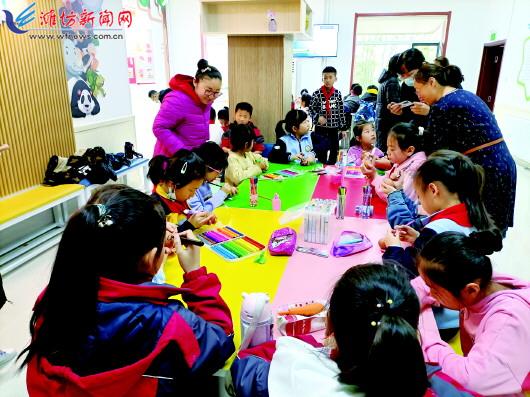 | 潍州路小学的学生们正在专心绘制彩蛋。 |