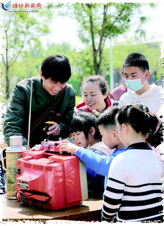 5月2日,在坊子区潍坊红色记忆博物馆内,一群儿童在家长陪伴下,听创办者罗洋(左一)讲解老物件。“五一”假期期间,市民纷纷走出家门,走进红色景区,领略秀丽山水,体验民俗文化,以丰富多样的形式欢度假期,尽享春光。 潍报全媒体记者 宋树云