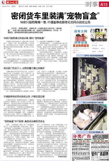 密闭货车里装满“宠物盲盒”160余只猫狗奄奄一息,中通暂停成都荷花池网点揽收业务