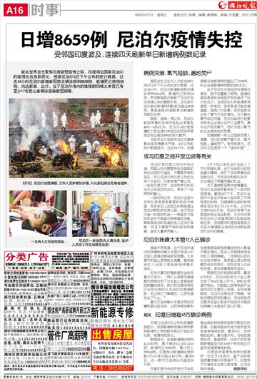 日增8659例 尼泊尔疫情失控 受邻国印度波及,连续四天刷新单日新增病例数纪录