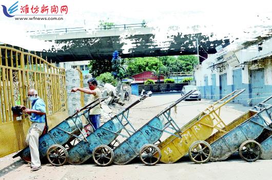 | 5月10日,印度卡纳塔克邦首府班加罗尔一条道路被路障封锁。 |