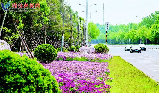 5月15日,车辆从潍城区宝通西街新309国道路口附近经过。道路两侧种植了草花,繁花似锦。潍城区对火车站、宝通西街、青银高速13号口、潍高路潍日高速匝道等多处城市出入口进行整治改造提升,现已基本完成。 潍报全媒体记者 赵春晖