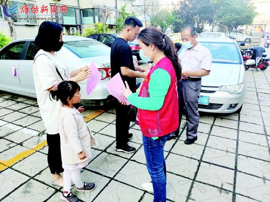 | 工作人员发放防溺水宣传材料。 |