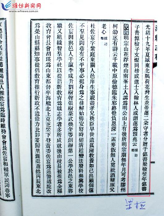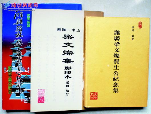 《潍县志稿》中对才子梁文灿的记载不到300字,对其身世不得而知。在他离世后多年,乡梓学者更是很少提及他,后因其所写《蝶恋花·潍阳十二月鼓子词》被挖出,再次被世人关注。2009年,梁文灿的嫡孙梁冈从江苏省淮安市来潍寻祖,潍人才知梁文灿还有直系后裔。 志书记载不足300字 性格耿直人生坎坷 《潍县志稿·人物》载:“梁文灿,字质生,城内梁家巷人。幼聪颖,文笔矞黄典丽,不似饾饤小家数。自科岁考以讫乡会,每试必捷,毕生不知落第为何事。光绪癸巳、甲午联捷进士,明年散馆授编修,寻考授御史,补浙江道。顾倜傥不羁,服御虽华,尚能清贫自守。尔时,国是已日非矣,每语乡人曰:‘御史,言官也。例准风闻奏事,目今风闻之事多矣。然,灿寒士也,倘以琐琐者冒渎宸听,则招权纳贿之诮,必随其后,争及寒蝉噤声之为,负国罪轻乎?’是以,在台前后近十年,发抄折件,世未之见。下直后,惟精研宋元人词以遣日。比鼎革,遨游大江南北,以发抒其牢骚不平之气。终无所遇,遂坎坷以殁。殁后,赖世交倾助之,殡殓始得成礼。所著见《艺文志》。采访册。” 《潍县志稿·艺文》载:“梁文灿,《蒙拾堂诗稿》(蒙拾堂)《词稿》四卷,《宋金元怀古词辑》。” 《潍县志稿·人物》中这段不足300字的小传,把梁文灿的性格和跌宕的人生经历作了精准公平的概括。这正如潍坊学者牛鹏志所言:“《志稿》编撰者,如丁锡田等多是梁文灿先生的故交,彼时先生离世只不过几年,所以记录准确清晰,又同情先生终无所遇,坎坷以殁,乃至于文笔‘老怀赋笔,如闻叹息’。” 关于梁文灿的民间传说也有几则。 梁文灿从小聪明过人,做文章从不打草稿,美文信手写就,因此得一美号“梁一章”。从先生“每试必捷”的科考经历来看,这应该不是虚言。 梁文灿考中进士的前一年,在梁家巷北旁的荷花湾出现了两朵并蒂莲,人们纷纷传言,这附近一定会同时发生两件大好事。次年,潍县城的于普源和梁文灿双双考中进士,入翰林院,吉兆成真。有人还写了几句歌谣:“荷花湾开并蒂莲,岸边会试出同年。潍县典故有真事,梁文灿与于普源。”这事,虽然《潍县志稿·杂稽》有载,但极有可能是向善向美的人杜撰的吧。 1901年,梁文灿出任浙江道监察御史。其间,慈禧动用北洋水师军费重修颐和园,梁文灿冒着生命危险,参了慈禧一本,虽未成功阻止,却着实令世人赞叹敬佩,传为佳话。此故事,在时间上吻合。1900年八国联军再烧颐和园(圆明园),1902年重修。凭梁文灿的气节和职业性质,有可能提出反对意见,而实情可能是劝谏,不是参本,当时,向光绪帝参本慈禧不会起作用,梁文灿也不会那么无知。史料没有记载。 嫡孙梁冈回潍寻根 乡梓方知其有后裔 曾经在很长的岁月里,潍坊人认为梁文灿没有直系后裔。直至2009年,梁文灿的嫡孙梁冈从江苏省淮安市来潍寻根,潍坊文史民俗界大为震惊。在此,先看看梁冈编著的2017年版本的《潍县翰林梁文灿质生公纪念集·前言》(以下简称《梁文灿纪念集》)中对于梁文灿的简介: “先祖梁公文灿于同治八年(1869)出生在山东莱州府潍县,字质生,也作质升、炙笙。 “……科举之路异常艰难,范进中举就是个典型范例。文灿公则不同,他聪慧过人,在科考道路上一帆风顺,自童生考试至殿试每考必捷,不知落第是什么感受。他7岁入塾,14岁中童生,17岁中秀才,以廪生(成绩优秀者)资历被入选国子监(太学生)。光绪十九年,回山东济南参加乡试,中癸巳恩科第十八名举人,时24岁。光绪二十年甲午恩科殿试联捷进士,钦点翰林院庶吉士,时26岁。光绪二十一年散馆授翰林院编修,正七品,时27岁。光绪二十五年30岁出缺,任浙江道监察御史,从五品。任内冒死上疏,参奏慈禧动用北洋水师军费建颐和园,一时名动京城。即光绪二十九年六月,改任福建道监察御史。 “从现存文灿公8本奏折来看,参劾贪官的有4本,分别弹劾闽浙总督许应骙、山东福山县令李舒馨、热河朝阳县知县缪桂荣、署顺天府房山县胡光泰、河西武安县令周光昌等。又有奏请办京师自来水厂,为山东屯卫田追偿扰民恳恩免缴租税,奏请制止东三省‘换领租照’以图‘夺佃’的恶政等,他以体恤民情、安靖地方为宗旨积极建言。在位近10年,任御史期间清正廉洁,是个为民请命、清正廉明的监官,高节可风。 “1912年民国改元。文灿公作为监官被留用,中华民国北洋政府初期,经大总统审查合格,先任淮扬道道尹,又被江苏省长齐耀琳委任为沪杭特派专员,参入调解江浙战争。又任江苏同里税所所长、山东省署秘书兼馆陶县厘金局局长等职。1928年春辞世于济南,享年60(虚)岁。 “他从政之余喜吟诗填词,著作有《红豆馆诗存》《红豆馆旧草偶成》《獭祭随录》《红豆馆撷余》《可谈集》《怜玉词》《惜金词》《怨兰词》《走马吟》《续走马吟》《蒙拾堂诗稿》《蒙拾堂词稿》等行世,其中《蝶恋花·潍阳十二月鼓子词》流传至今,深得方家青睐,在民间也口碑载道。一生写作诗稿、骈文、随笔若干卷,均造诣杰出,创作了脍炙人口的词稿180多篇,流传至今。是出众的乡土词人、诗人,散文圣手,老潍县士子中的佼佼者。其书法宗法魏碑,传世作品被视为拱璧……”