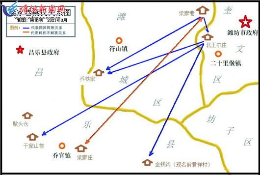 | 潍县城梁家巷梁氏关系图。梁化刚 制图 |
