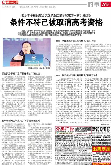 衡水中学校长郗会锁之子赴西藏参加高考一事引发热议 |