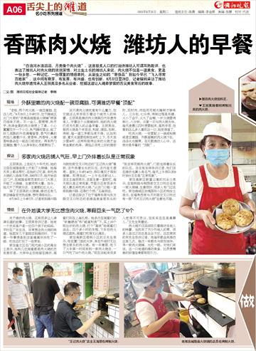 “白浪河水浪滔滔,月亮像个肉火烧”,这首脍炙人口的打油诗潍坊人可谓耳熟能详,也表达了潍坊人对肉火烧的浓浓深情。对土生土长的潍坊人来说,肉火烧不仅是一道美食,更是一份乡愁、一种记忆,一份厚重的情感寄托。从诞生之初的“奢侈品”到如今早已“飞入寻常百姓家”,这中间有萌芽、有发展、有兴盛,也有创新。8月22日至28日,记者辗转采访了潍坊肉火烧非遗传承人王丽英及多名从业者,挖掘这道让人魂牵梦萦的舌尖美食背后的故事。 □文/图 潍坊日报社全媒体记者 李楠 外酥里嫩的肉火烧配一碗豆腐脑,可谓潍坊早餐“顶配” “老板,两个肉火烧,一碗豆腐脑,在这儿吃。”8月23日上午9时许,位于潍城区北门大街的“老潍县城隍庙火烧铺”顾客仍络绎不绝。不一会儿,香喷喷、热乎乎、色泽金黄的肉火烧便上了桌。小心翼翼咬开一个小口,热气瞬间冒出,起了好几层酥的外皮满嘴留香,香气扑鼻的肉馅儿滴着汁水,麦香味、肉香味、火燎香味掺杂在一起在口腔迸发。再来两勺豆腐脑,整个人从身体到心灵都熨帖了。 说不清肉火烧究竟有什么魔力,但它就这么牢牢吸引着这个城市人的味蕾。王丽英是潍坊肉火烧第四代非遗传承人,守着这个火烧铺29年,她的肉火烧已成为无数人的必备早餐。王丽英说,做肉火烧是个辛苦活,和面、调馅、包制、烤制,每一道工序都马虎不得。比如和面,夏天水温要控制在60℃上下,冬天至少要80℃,这样和面烤出来的火烧才会有金黄的色泽。调馅必须用上好的猪前肘、后肘肉,肉馅用花椒水腌制才够味儿。三分包,七分烤,烤制过程是关键,火小了会干,火大了会糊,一炉火烧要烤制七、八分钟。日复一日与肉火烧为伴,每天凌晨三四时便要起床,虽然辛苦,但看到这么多人喜欢这一口,她觉得值了。 吃肉火烧,一定要配上一碗咸粘粥或者豆腐脑,外酥里嫩的肉火烧下肚,汤汤水水暖胃,在无数潍坊人心中,这绝对是早餐的“顶配”。 多家肉火烧店铺人气旺,早上门外排着长队是正常现象 王丽英说,上世纪九十年代初,她的父母在城隍庙街上开起了火烧铺,她每天早上都去帮忙。在她的记忆里,来吃肉火烧的人络绎不绝。2002年7月,她开始自立门户,在城隍庙街西首的北门大街上开起了火烧铺,生意同样火爆。如今,她又开了两家分店,生意都红红火火。 除了王丽英的火烧铺,潍坊还有几家店铺备受市民追捧,想吃得排长队。 8月28日上午8时许,记者来到潍州路与院校街交叉口附近的“王记肉火烧”看到,店外排着长长的队伍,店内座无虚席。直到上午9时40分,排队情况才得到缓解。即便如此,一上午也没断过人。店主王海朋表示,店里生意一直较忙,每天排队是正常现象,节假日还有很多外地人慕名来吃肉火烧。“从店门口能一直排到潍州路,还得打个拐。”王海朋说。 记者还探访了位于福寿东街与东方路交叉口附近的老潍县美食街东头的“张吉祥花椒肉火烧”,门前也排着长长的队伍。店主张吉祥告诉记者,他们店在潍坊也算小有名气,每天上午排队到9时30分左右是“正常现象”。 家住高新区新富公寓的刘女士表示,在银枫路与桐荫街交叉口附近也有一家火烧铺,生意很好,很多人专门过去吃。家住潍城区玫瑰国际小区的相女士表示,在福寿西街与月河路交叉口附近有一家“月河王记肉火烧”生意也不错。 在外地读大学无比想念肉火烧,寒假回来一气吃了10个 关于潍坊肉火烧,还有很多让人津津乐道的故事。王丽英告诉记者,她有一个忠实客户是一位四个孩子的妈妈,平时在广东生活,非常想念肉火烧的味道。她驱车几千里路回到潍坊时,下车第一件事便是到店里痛痛快快吃了一顿,吃完还打包了一些带走。 家住奎文区名门现代城小区的高女士表示,她和几位闺蜜都是肉火烧的忠实爱好者。大学毕业后她留在潍坊,闺蜜们则在上海扎根。她多次在闺蜜们的“软磨硬泡”和“威逼利诱”下,买上20个刚出炉的肉火烧,打个“高铁”给闺蜜们送去。四个多小时的车程,下车后肉火烧还温热,闺蜜们吃得无比满足。 家住高新区银枫小区的王先生表示,他在厦门读的大学,身在外地时无比想念家乡的肉火烧。有一年寒假,他下了火车第一时间来到一家肉火烧店,一口气吃了10个肉火烧。“现在说起来很多人觉得不可思议,但实实在在是真事儿。”王先生笑着说。 肉火烧不仅深深吸引着潍坊本地人的味蕾,也抓牢了不少外地人的胃,很多人尝过之后总是念念不忘。远在南京的宋先生告诉记者,他每年都会来潍坊出差几次,每次一来都先与朋友结伴,寻一家肉火烧铺,大吃一顿。对他们来说,这一口地道的潍坊美食,比昂贵精美的珍馐佳肴都有吸引力。 泥炉逐步取缔,气炉、电烤炉成为主流 传统肉火烧是泥炉烤制。因环保需要,泥炉逐步被取缔。王海朋告诉记者,早些年他一直用特制的、以煤炭为燃料的泥炉。“这种泥炉子烤出的火烧,带着一股独特的火燎香味。”王海朋说。 目前,潍坊肉火烧主要由气炉(转炉)、气炉(拉炉)和电烤炉三种炉子烤制而成,口感也有所不同。记者走访了市区几家生意较好的肉火烧店,发现泥炉被取缔后,他们都采用了气炉(转炉)。张吉祥表示,和拉炉相比,转炉是最还原泥炉精髓的一种,烤出的肉火烧油还附着在外皮上,酥脆焦香。但一次烤制数量有限,还需要一停不停地翻看,十分辛苦。拉炉对操作技术要求稍低,效率高一些,但缺点就是烤
