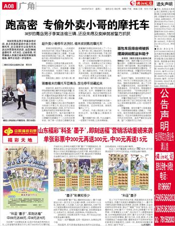 跑高密 专偷外卖小哥的摩托车