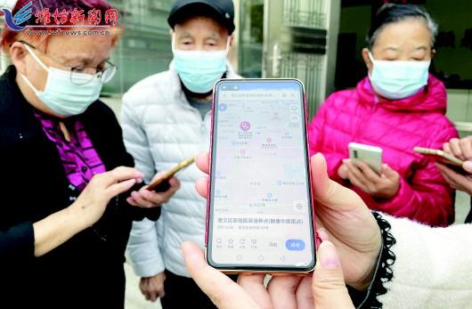 | ◥奎文区新华社区居民们通过地图APP搜索就近的疫苗接种点。 |