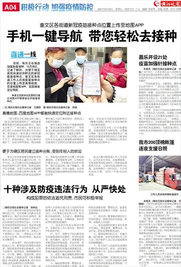 本报讯(潍坊日报社全媒体记者 付生)10月27日,记者在昌乐县人民医院东院区新冠病毒疫苗接种点看到,十几名符合条件的市民正在排队接种新冠病毒疫苗加强针。 “目前疫苗充足,无需预约,携带身份证前往即可。”昌乐县卫健局副局长、县疾病预防控制中心主任林艳告诉记者,根据统一部署,该县自10月15日启动接种新冠病毒疫苗加强针工作,对已全程接种国药中生北京公司、北京科兴中维公司、国药中生武汉公司灭活疫苗和天津康希诺公司的腺病毒载体疫苗满6个月的18岁及以上人群等进行接种。 “目前,全县已开设21处加强针接种点,包括昌乐县人民医院、各镇街卫生院等,完成重点人员加强免疫5000多人次。预计年底前将超过30万人次。”林艳说,根据研究显示,完成新冠病毒疫苗全程免疫6个月后再接种1剂加强针,受种者体内的中和抗体迅速增长。加强免疫2周后,中和抗体水平较接种前可提升几倍甚至几十倍。