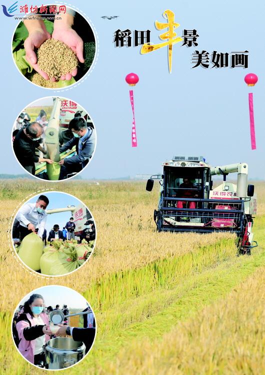 秋高气爽,稻谷飘香。10月28日上午,在寒亭区高里街道潍坊十万亩海水稻种植基地里,金灿灿的海水稻田望不到边,成熟饱满的稻穗随风轻轻摇摆,在蓝天白云的映衬下,甚是喜人。 上午10时30分,随着第一辆收割机开进田垄开镰收割,稻田里响起丰收的交响曲,正式宣告今秋海水稻进入收获季节。金灿灿的稻穗欢快地进入脱粒机,一亩海水稻很快收割完毕,饱满的米粒从脱粒机的出口雀跃着拥出来,工作人员双手撑着米袋子小心翼翼地把它们接住,一袋袋装好,码整齐。搬着沉甸甸的米袋子,他们脸上的笑容更加灿烂。 据了解,海水稻要在5月插秧,经历近6个月的生长才成熟。该基地今年的种植面积达2.51万亩,是全国规模最大、唯一实现三产融合发展的海水稻示范园区。当天的测量产量结果为平均亩产691.6公斤,创历年新高。 潍坊日报社全媒体记者 巩建国