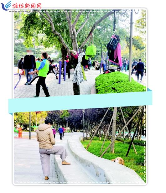 狗在草坪里撒欢,绿化树被当作挂衣服和包的“挂物架”,甚至有人将绿化树当作“健身器材”,使劲拉扯枝杈……10月28日,记者走访城区多处公园,看到了不文明的一幕幕。 □文/图 潍坊日报社全媒体记者 刘晓梅 潍坊植物园 荷花池周边环境脏乱 10月28日,记者从潍坊植物园东门进入园内,这里路面洁净,环境怡人,园林绿化养护得井然有序,不少游客前来休闲娱乐。 不过,记者来到园内荷花池边看到,池内、池边有很多从树上掉落的枯叶,周围还有大量杂草,看起来非常脏乱,与周边环境很不协调。在旁边不远处,有两名妇女坐到了绿化植物攀爬架上,一边聊天一边健身。 “潍坊植物园的整体环境不错,但是荷花池这边养护管理不是很到位。”在现场,游客吴女士对记者说,她注意到,多年来,荷花池这里都有很多杂草,水面上也经常有枯枝、落叶,很影响植物园的环境。 东苑公园 绿化树变身“挂物架” 当天上午,记者来到城区东苑公园,发现这里有不少健身市民,有的在跳舞,有的在踢毽子。在公园南侧,有人将一些大葱及衣服等挂在了一棵绿化树上,这棵树树干直径只有五六厘米,给人一种不堪重负的感觉。在公园的健身区,多棵绿化树变身“挂物架”,悬挂着大量衣服和包,还有人将衣服放在绿化带内的小龙柏上。 “很多人在公园内跳舞、健身,担心将包、衣服放在地上会弄脏,干脆挂在树枝上,有一个人这样做,其他人纷纷效仿,根本不考虑绿化树能不能承受得住。”在东苑公园游玩的陈女士说,看到一些小树被压弯了“腰”,她感到十分可惜。 在城区自怡园内,南门内侧有一片草坪,两个年幼的孩子在草坪内玩耍,家长根本不予制止。在这里,也有很多人在跳舞,景观道旁多棵大树上被人拴上了绳子,绳子上悬挂着大量衣服、包,非常难看。在健身区,多棵小树挂有衣物。 在健身区西侧一条小路旁的绿化带内,一名50岁左右的女子在用力拉扯一棵绿化树的枝杈,不时做各种拉伸动作,俨然将这棵树干直径十多厘米的绿化树当成了“健身器材”。另外,在公园内的荷花池边,堆有一些干枯的荷叶、杂草。 口袋公园 大狗在草坪内恣意撒欢 随后,记者来到高新区民安巷与新城西路交叉口西侧的“口袋公园”看到,一名女子正在公园内遛狗,黄色的大型犬没有拴绳,在草坪内跑来跑去撒欢,而她只顾玩手机,丝毫不加以约束。 在此游玩的刘先生表示,城市文明需要大家共同维护,希望大家能够提高自觉性,约束自己的行为,做文明市民。 对此,潍坊市园林环卫服务中心的工作人员表示,他们会让保安劝导市民文明游园,同时希望市民提高文明意识,自觉爱护我们共同的家园。