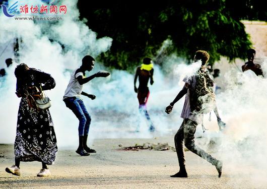 | 10月27日,当地人在苏丹首都喀土穆街头与安全人员对峙。 |