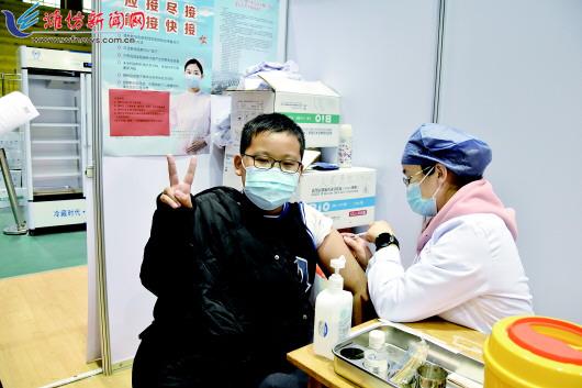 本报讯(潍坊日报社全媒体记者 王路欣 通讯员 王秀慧)11月3日,在完成前期调查统计后,寿光市3-11岁人群新冠疫苗接种工作正式开始。 上午9时,在位于潍坊科技学院体育馆内的接种点,寿光市实验小学的家长带着孩子有序排队、扫码、入场、登记、接种(上图)。 “阿姨我看看针头,啊!才这么小啊,肯定没事。”六年级的仉柏霖看了一下针头,一下子就变勇敢了,打完后冲后边的同学喊道:“一点也不疼,不用怕。” 寿光市卫健委副局长、寿光市疾控中心党委书记韩颜华告诉记者,寿光市3-11岁人群新冠疫苗第一剂接种工作于11月3日开始,预计11月20日结束,将为12万余适龄人群接种。