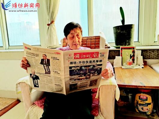 | 孙庆云老人阅读《潍坊晚报》。 |