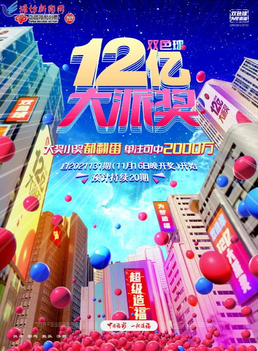 中国福利彩票“双色球”游戏自2003年2月16日上市以来,至今已陪伴广大公众走过了18个春秋,为需要帮助的人带去了温暖和关爱,为人们的生活增添了惊喜和快乐,也让众多购彩者梦想成真。为回馈广大公众和购彩者的支持,中国福利彩票“双色球”2021年度12亿元大派奖再度开启,一场年末盛宴即将开始。 12亿派奖总金额 再平彩市派奖纪录 双色球,为梦造福。上市以来,双色球游戏累计中出一等奖超20000注,中出1亿元以上大奖33个。我国彩票市场每10个亿元大奖中就有6个出自双色球游戏,排名前十名亿元大奖中双色球游戏独占六席。 本次派奖是双色球的第16次派奖,将从双色球第2021131期(开奖日期为2021年11月16日,星期二)开始,派奖总金额12亿元,预计连续派奖20期。12亿元的派奖总额也追平了双色球游戏派奖金额纪录。 大奖小奖都翻番 单注最高可中2000万元 此次活动将对双色球一等奖和六等奖开展派奖,投注方式不受限制。设立一等奖特别奖,奖金总额5亿元,每期安排2500万元,对当期单票金额超过20元(含)的一等奖中奖彩票,每注按当期一等奖单注基本奖金1:1比例派送特别奖奖金。若当期一等奖特别奖奖金不足以按照1:1比例派送奖金时,则由符合派奖条件的一等奖中奖者按照中奖注数均分。若一等奖特别奖奖金当期有结余,则顺延滚入下一期合并派发。也就是说,符合单票金额条件下,单注一等奖奖金最高可达2000万元。 此外,设立总奖金7亿元的六等奖翻番奖,对当期单票金额超过20元(含)的六等奖中奖彩票,每注派送固定奖金5元,派送完毕为止。 中国福彩一起造福 双色球为梦造福 梦想改变生活,爱心创造奇迹。福彩双色球上市18年以来,不仅为广大购彩者带来了幸运,还为社会公益事业做出了贡献。截止到2021年10月,双色球累计销售7300多亿元,筹集彩票公益金2500多亿元,所筹集公益金被广泛用于补充全国社会保障基金不足、支持教育助教助学、发展残疾人事业、困难群体大病救助、城乡医疗救助、红十字事业,以及扶贫、文化、法律援助、赈灾救灾、大型体育赛事等社会公益事业,以及“扶老、助残、救孤、济困”等社会福利事业。 福彩双色球,为梦造福!超级造福节,12亿大派奖,期待您的参与!全国福彩销售站,恭候您的光临! (中国福彩)