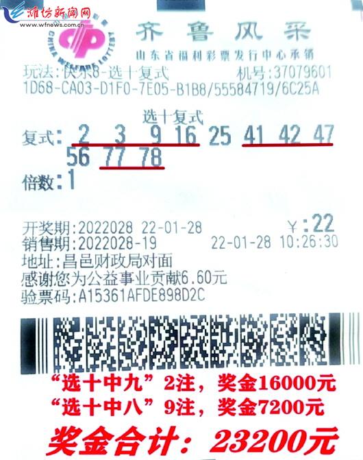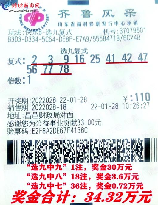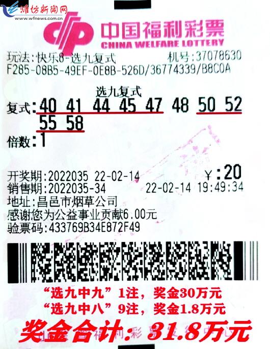 福彩快乐8,快乐你我他!春节前后,潍坊昌邑市接连传来快乐8的中奖喜讯。1月28日,在节前的最后一期开奖中,位于昌邑市财政局对面的37079601号福彩站中出1注“选九中九”,奖金30万元;2月14日,位于昌邑市烟草公司附近的37078630号福彩站同样中出1注“选九中九”30万元大奖。 福彩快乐8虽然上市仅一年多时间,但凭借玩法丰富、返奖率高、开奖号码多等特点,在彩市大放异彩,吸引了越来越多的彩友参与其中。在带来全新购彩体验的同时,快乐8也频频为彩友们带来欢乐和惊喜。2注“选九中九”大奖的接踵而至,点燃了潍坊广大彩友的参与热情,大家跃跃欲试,都想抢得一份虎年的“好彩头”。 中奖后对“一号两打”更加期待 对于彩友姜先生(化姓)来说,往年都期待着春节假期能够多休息几天,可是今年他却特别渴望假期能够尽快结束,因为节前他购买的2张快乐8“选九”、“选十”复式票都中了大奖,奖金共计36.64万元。由于春节休市的原因,奖金还未落袋为安。 熬过了一个“漫长”的假期,2月8日,姜先生终于迎来了领奖的大日子。在兑奖室,姜先生眉飞色舞地讲述了自己的中奖经过。“从快乐8上市后,我就一直在购买,个人比较喜欢‘选九’、‘选十’这样的高奖级的玩法。得益于快乐8开奖号码多的特点,复式投注就非常适合,不仅提高了中奖几率,在运气好的情况下,甚至还可能中得多注一等奖。”姜先生说,他起初投注“选九”“选十”的号码并不相同,后来受中奖报道的启发,开始选择“一号两打”,即用相同的一注号码同时投注“选九”“选十”玩法。“事实证明,这种方式是非常正确的,倘若运气更好点,再多中1-2个号码,奖金将会达到超乎想象的高度……” “化繁为简”——“段区”让选号变得更简单 “快乐8选号其实并不难!”,2月16日,中得“快乐8”31.8万元大奖彩友刘先生(化姓)在办理兑奖手续时如是说。 据了解,刘先生是一位老彩友,非常熟悉福彩的各种游戏和玩法。购彩多年,刘先生不仅收获了数不清的欢乐,还练就了一手“化繁为简”的选号技巧。刘先生说,他喜欢研究号码走势,但跟绝大多数彩友不同,他极少逐个选取号码,而是采用“段区”的方式,先判断中奖号码开出的大概区域,再从中挑选心仪号码。 “快乐8虽然备选号码多,但是开出的中奖号也多,而且中奖号密集开出的情况也很普遍,因此我们就可以通过简单的‘分区’来降低选号难度。我的做法是分为4区,即‘1-20’、‘21-40’……分区之后,再根据自己的判断,从某个或某几个区当中挑选心仪的号码。”刘先生说,他当天判断“40-60”这个区段的号码被开出的几率较高,而后从中精选出10个号码,打了一张“选九10码”复式票。令他感到惊喜的是,这张彩票命中了9个开奖号码,喜获31.8万元奖金。 从姜先生和刘先生的中奖经历不难看出,他们的投注方式有一个共同之处,那就是“复式”!这也是他们能够擒获大奖的主要秘诀。由于快乐8的开奖号码通常要远远多于投注号码,因此“复式”就有机会中得多注大奖。喜欢快乐8的你,不妨也试试吧! (潍坊福彩 王晓峰)