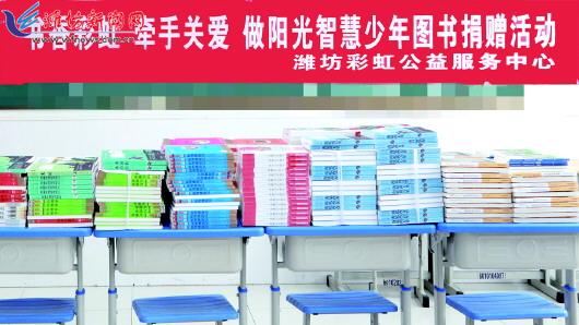 本报讯(潍坊日报社全媒体记者 刘晓梅)4月23日是“世界读书日”。4月19日,潍坊彩虹公益服务中心联合我市一家爱心企业筹集3000余册爱心图书,捐赠给临朐县、安丘市两所偏远乡村小学,由此开启了2022年潍坊彩虹公益“书香彩虹 牵手关爱”图书进校园活动的序幕。 19日,记者在图书捐赠现场看到,3000余册爱心图书涵盖中外名著、科学知识、红色读物等(右图)。“这些书要捐给临朐县、安丘市两所偏远乡村小学,让孩子们多读书,爱上读书。”潍坊彩虹公益服务中心“书香彩虹 牵手关爱”项目负责人张存三说,去年6月份,该活动入选潍坊市直公益慈善类社会服务项目库;9月份,活动被推选为2021年度全市学雷锋志愿服务“四个最美(佳)”志愿服务项目。 目前,“书香彩虹 牵手关爱”公益项目图书进校园活动已经在临朐县、青州市、峡山区等地相继开展,先后为15所学校捐赠图书共计15000余册,直接受益师生达8900人次。