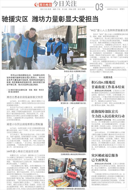 驰援灾区 潍坊力量彰显大爱担当