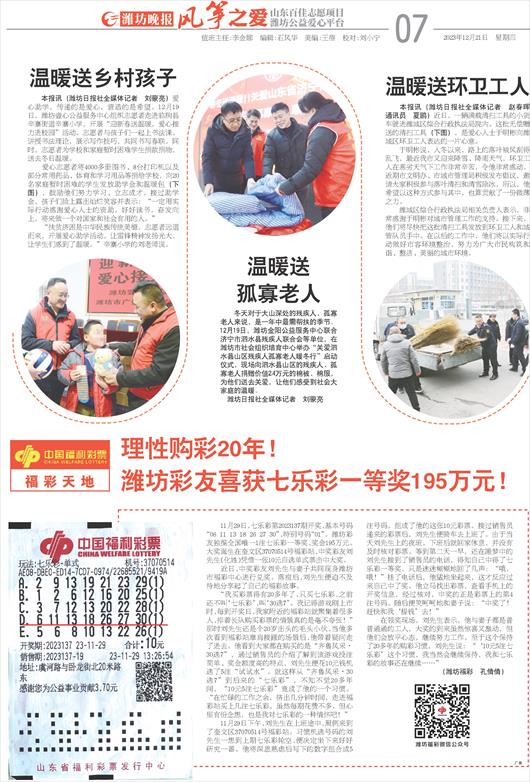 潍坊彩友喜获七乐彩一等奖195万元!