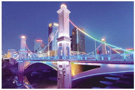 坐落于白浪河上的东风桥桥身通体亮了起来,桥体持续变换着颜色。桥面车水马龙,桥体灯光闪烁,当万家灯火亮起,东风桥又为潍坊城市夜景增添了一道亮丽的风景线。