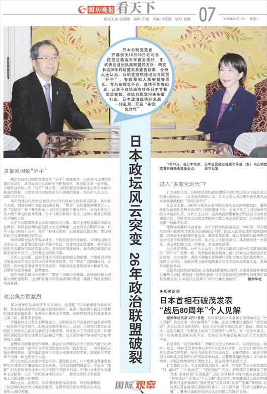 日本政坛风云突变 26年政治联盟破裂