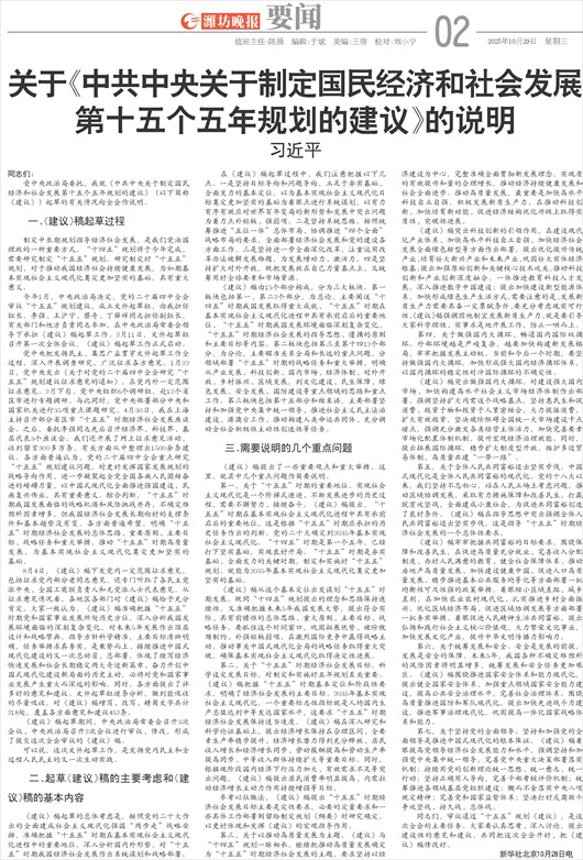 第十五个五年规划的建议》的说明
